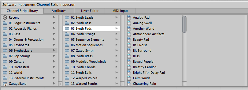 Mainstage 3 instrument list blue carpet.